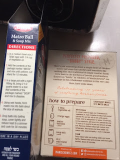Anyway, speaking of matzoh balls, the image shows the directions by Streits and Manischewitz. I like the Manischewitz directions better because they tell you how many cups of water to use (Streits tells you how many quarts and I forget the conversion). Also Streits wants the matzoh ball mixture to cure at room temperature which Manischewitz wants it in the refrigerator. Having done both I think Manischewitz is correct on this point.